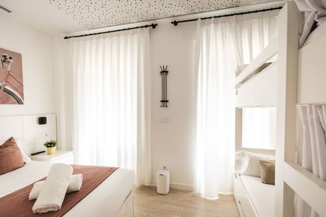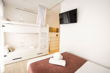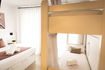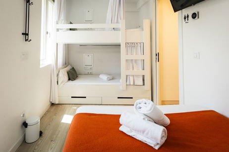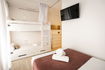 Con una cama de 135 centímetros y una litera, esta es nuestra habitación para 4 personas. Dispone de aire acondicionado, televisión y baño compartido fuera del dormitorio. Asimismo, cuenta con espacio de almacenamiento, luces de lectura led, enchufes, conexión USB y casilleros individuales. El baño es compartido y se encuentra fuera de la habitación.
